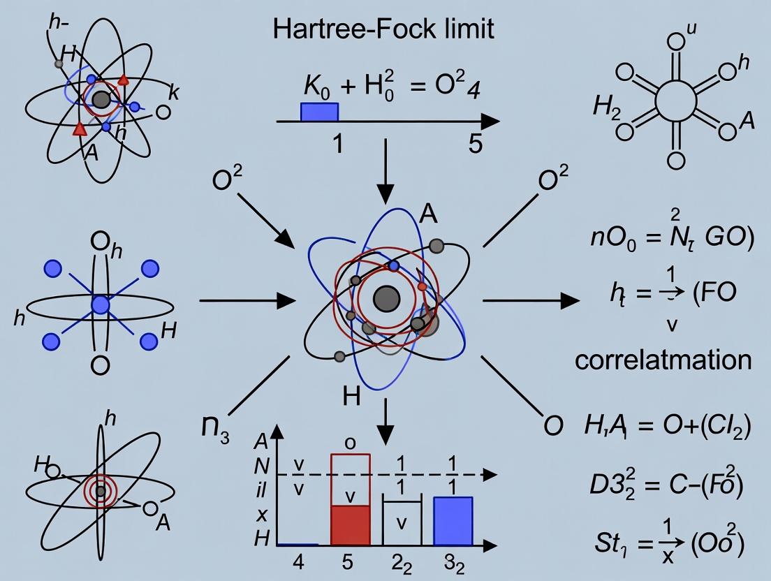 The Hartree-Fock equations are solved iteratively (Self-Consistent Field procedure) to find the molecular orbitals that minimize the total electronic energy. The exact HF limit is only reached with a complete basis set (CBS), an infinite set of basis functions. In practice, we approach this limit asymptotically using finite, increasingly larger basis sets.