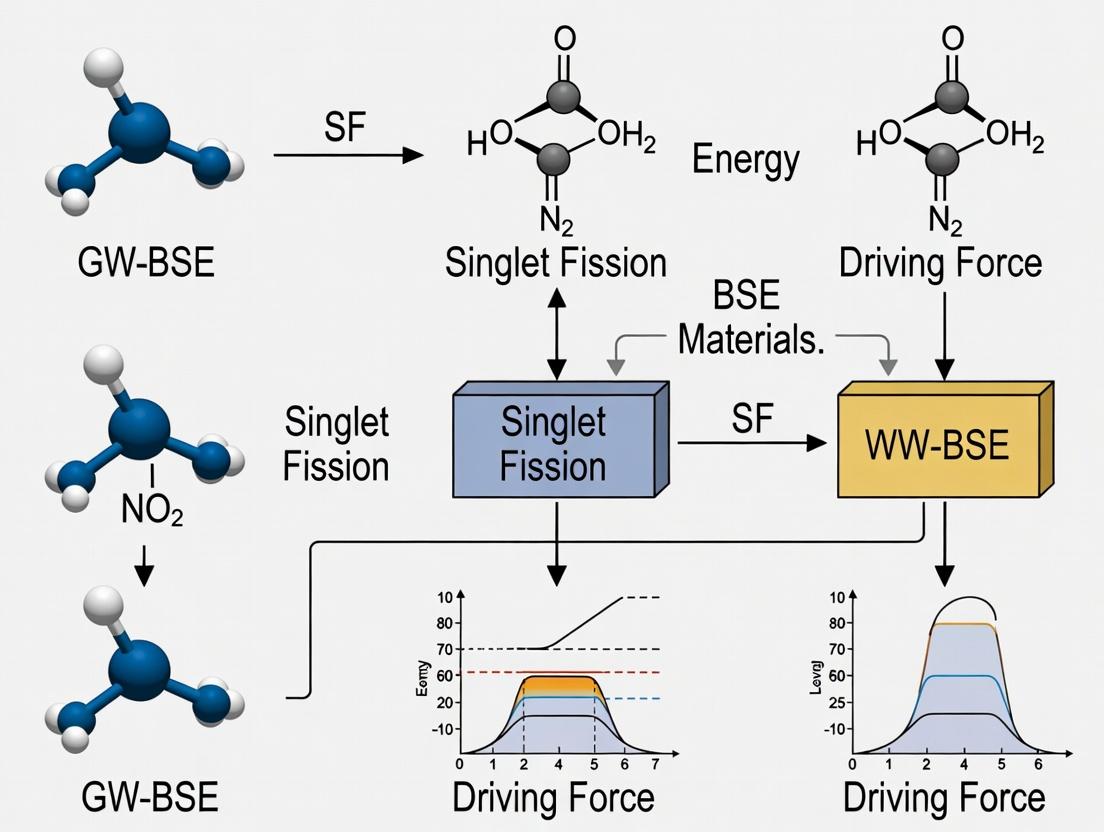 Within the thesis framework of GW-BSE singlet fission (SF) materials research, the driving force, ΔESF = E(S1) - 2E(T1), is the central energetic metric determining SF feasibility and kinetics. A negative or near-zero ΔESF is generally required for exothermic, efficient fission of a singlet exciton (S1) into two triplet excitons (T1). This application note details the computational and experimental protocols for determining ΔESF and its critical role in screening and designing SF materials for applications in photovoltaics and quantum information.