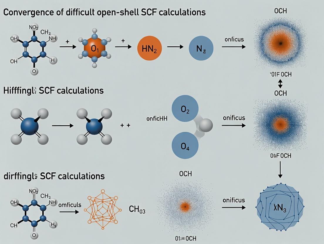 This technical support center provides troubleshooting guidance for researchers working on difficult open-shell Self-Consistent Field (SCF) calculations, within the context of a broader thesis on convergence strategies. The challenges stem from intrinsic electronic structure complexities.