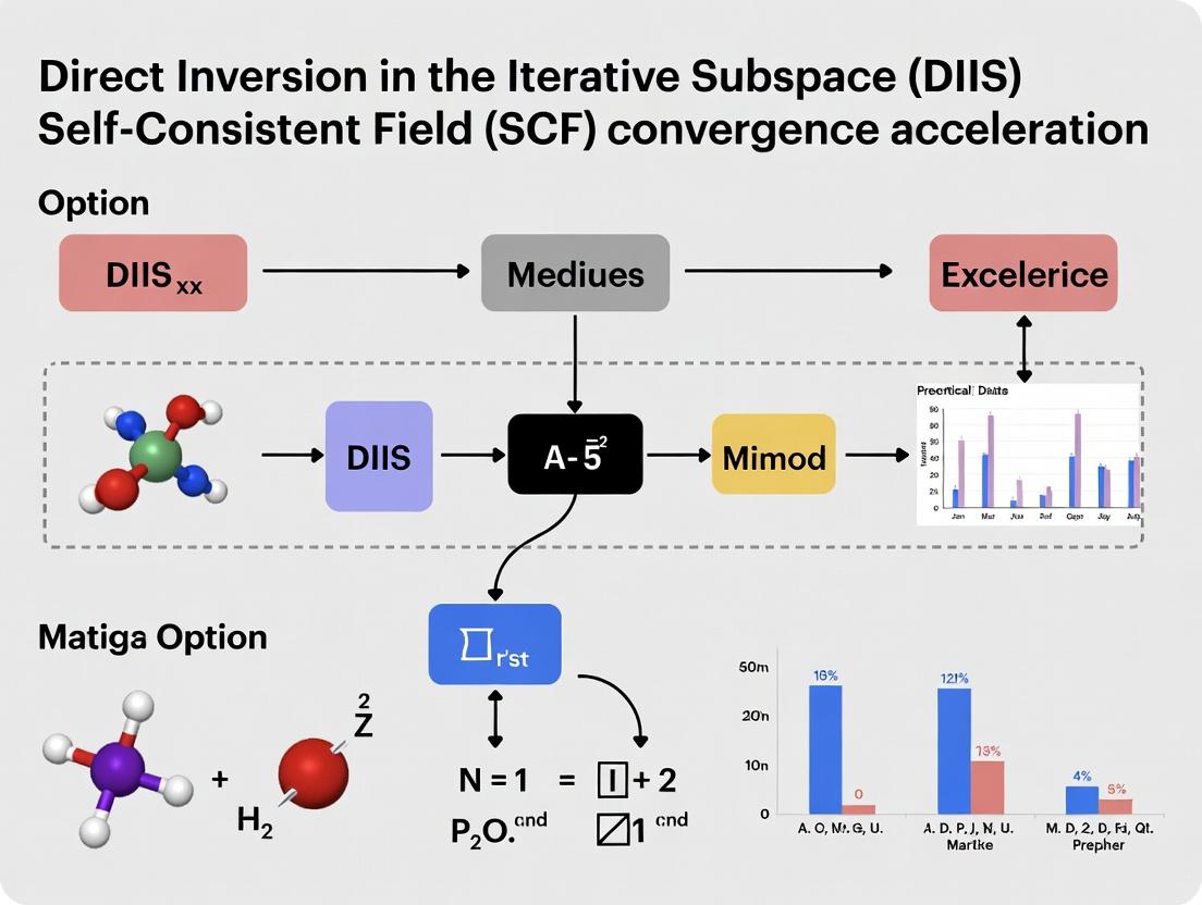 Classic DIIS (Pulay, 1980): Extrapolates new Fock/ density matrices by minimizing the norm of the residual error vectors from previous iterations within a defined subspace. It is efficient but can converge to unphysical, higher-energy solutions or stagnate.