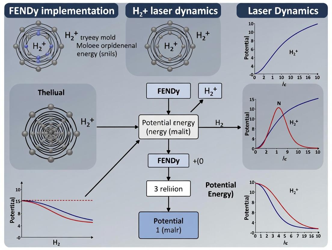The implementation of the FENDy framework within H2+ laser dynamics represents a significant advance in precision control for biomedical research. By establishing a solid foundational understanding, providing a clear methodological roadmap, offering solutions for robust optimization, and validating its superior performance, this approach empowers researchers to achieve unprecedented accuracy in laser-based molecular interrogation. The synergy between FENDy's frequency encoding and the unique properties of H2+ lasers opens new frontiers in high-resolution spectroscopy, dynamic molecular imaging, and accelerated drug discovery. Future directions should focus on miniaturizing systems for clinical point-of-care diagnostics, exploring integration with AI for real-time adaptive control, and expanding applications to in vivo sensing and targeted phototherapeutic interventions, ultimately bridging the gap between advanced laser physics and tangible clinical outcomes.