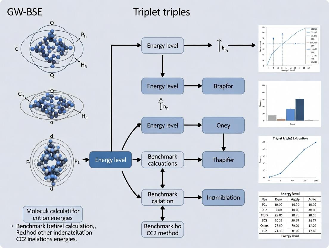 3. Benchmarking Workflow: A trusted set of small to medium organic molecules with experimentally well-characterized or high-level (EOM-CCSD, CASPT2) reference triplet energies is selected. All methods (GW-BSE, CC2, TDDFT) calculate the T1 energy for each molecule under identical conditions (geometry, basis set). Statistical errors (MAE, ME, RMSE) are computed against the reference set.